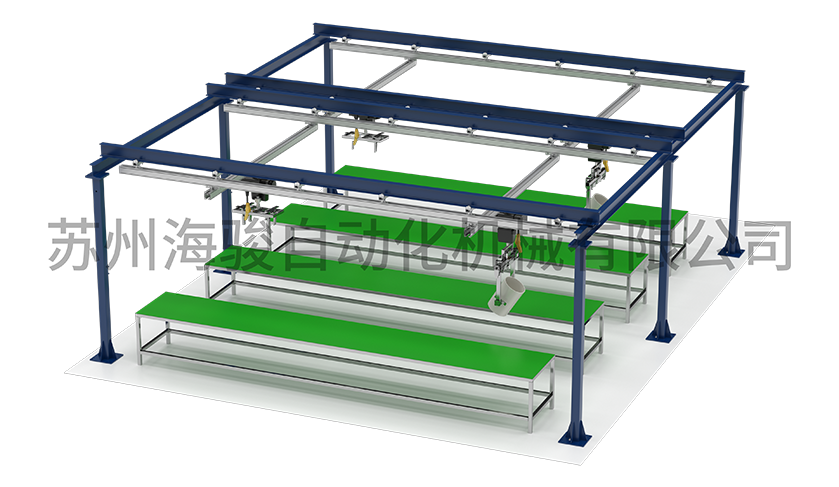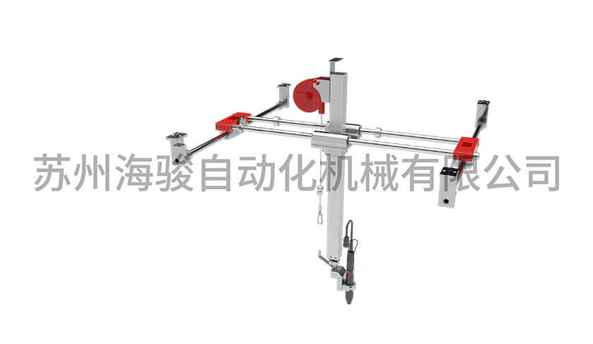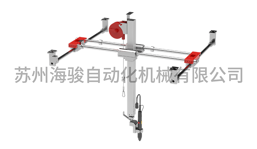 用于上下升降左右前后移動的抗扭助力臂。結構簡單,適合于懸掛在導軌上使用,就成為一套完整的懸掛式的垂直助力臂。可用于垂直、水平方向擰緊。配合拉繩傳感器,能夠實現 X/Y/Z 三個方向上的定位控制。