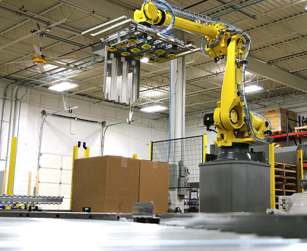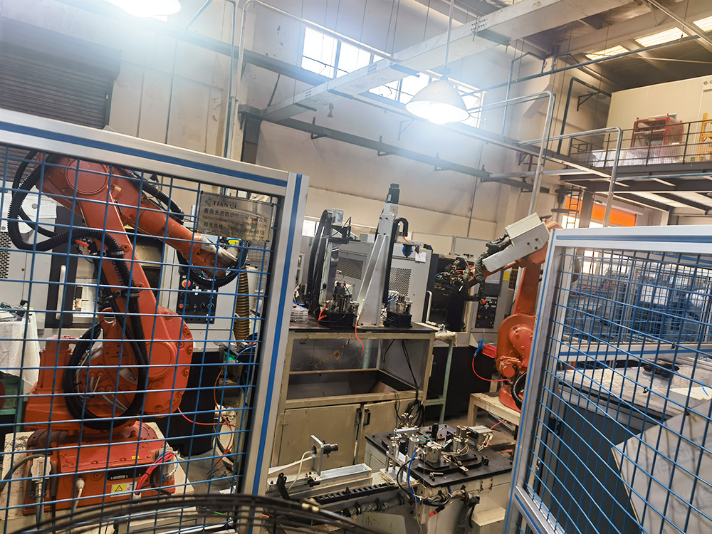 機器人自動上下料是指通過工業(yè)機器人實現(xiàn)工件在加工設(shè)備(如機床、注塑機等)與物料臺之間的自動化裝卸作業(yè),是智能制造生產(chǎn)線的關(guān)鍵環(huán)節(jié)。該系統(tǒng)主要由工業(yè)機器人、視覺檢測系統(tǒng)、抓取夾具、物料輸送線及控制系統(tǒng)組成:機器人搭載專用夾具(如真空吸盤、機械爪)精準(zhǔn)抓取工件,視覺系統(tǒng)對物料位置、姿態(tài)進行實時檢測與校正,確保上下料精度;控制系統(tǒng)協(xié)調(diào)機器人與加工設(shè)備的動作時序,實現(xiàn)全流程自動化。